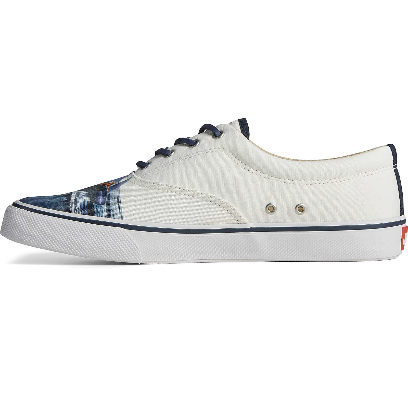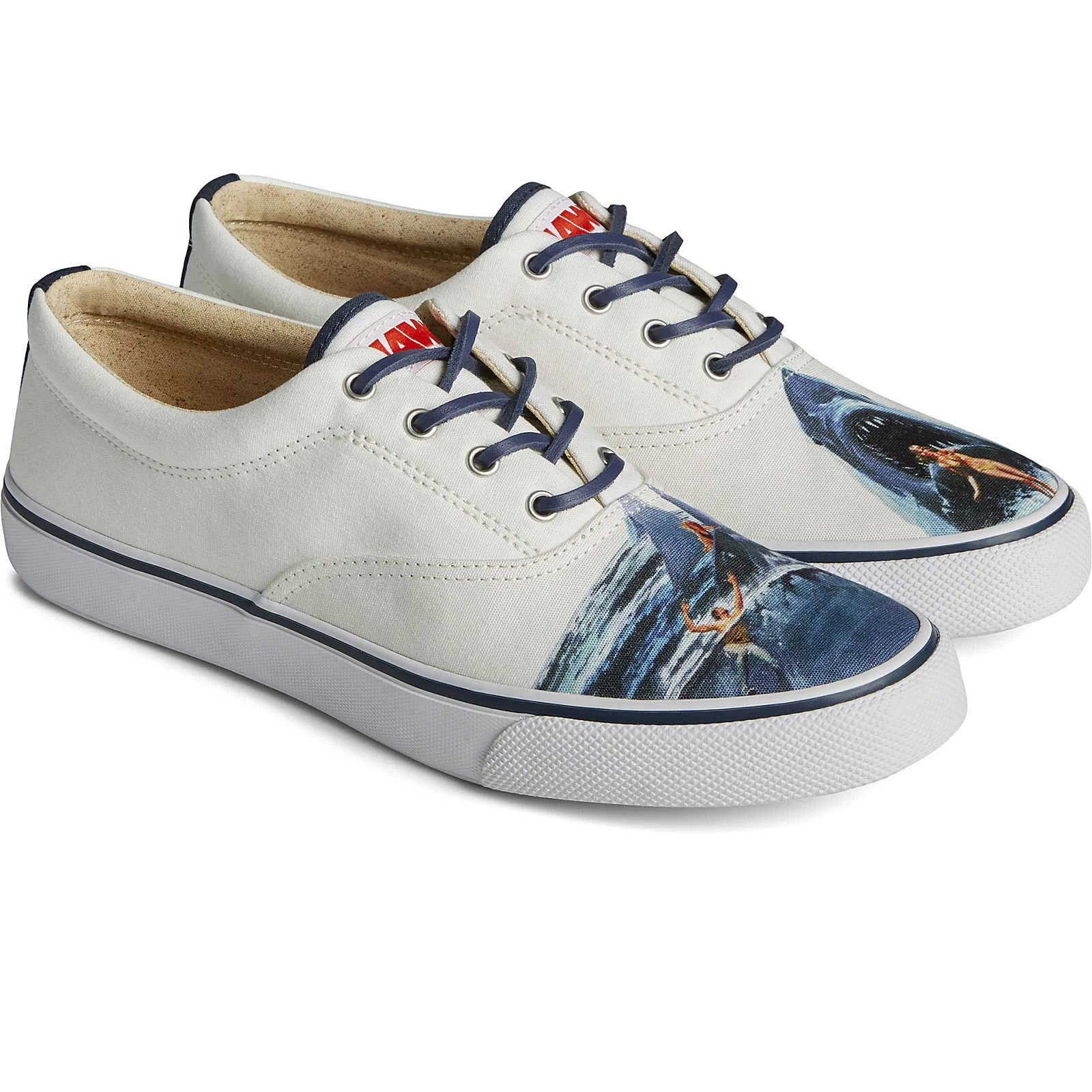 Our classic deck sneaker is given a bold new look with an upper inspired by the movie JAWS. A cleverly hidden gore construction means it can be kicked off with ease for impromptu beach walks or ocean dips.